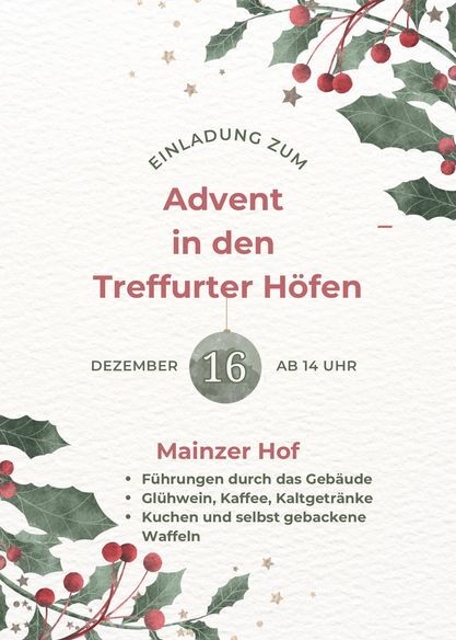 Führungen durch das Gebäude, Glühwein, Kaffee und Kaltgetränke, Kuchen und selbstgebackene Waffeln...