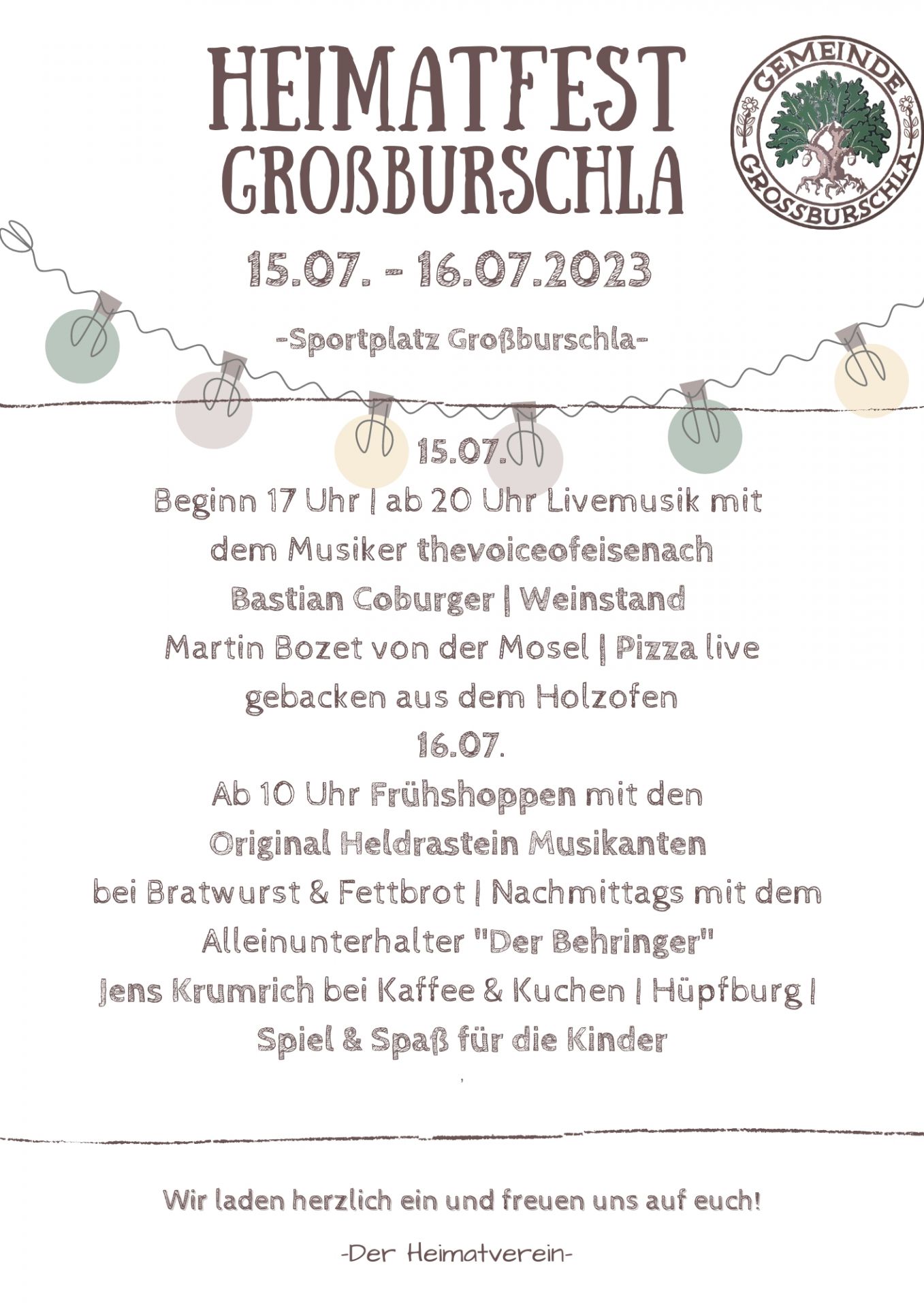 Der Heimatverein Großburschla feiert 33-jähriges Jubiläum und lädt zum Fest auf dem Sportplatz ein.