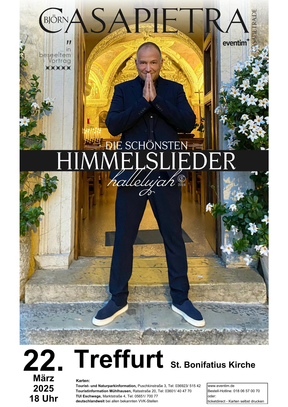 Björn Casapietra präsentiert seine "schönsten Himmelslieder" in der Bonifatiuskirche, Tickets (39,60 €) in der Tourist-Info Treffurt.