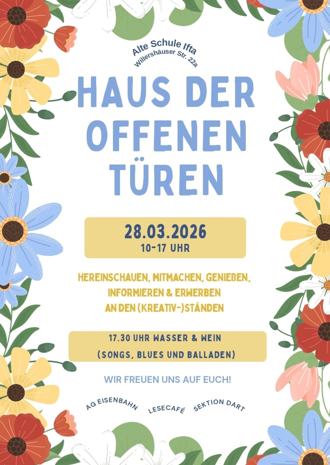 Wir kommen miteinander ins Gespräch - die AG Eisenbahn, die Sektion Dart und das Lesecafe erwarten Sie, wo liebevolle Kindergeschichten vorgestellt werden.