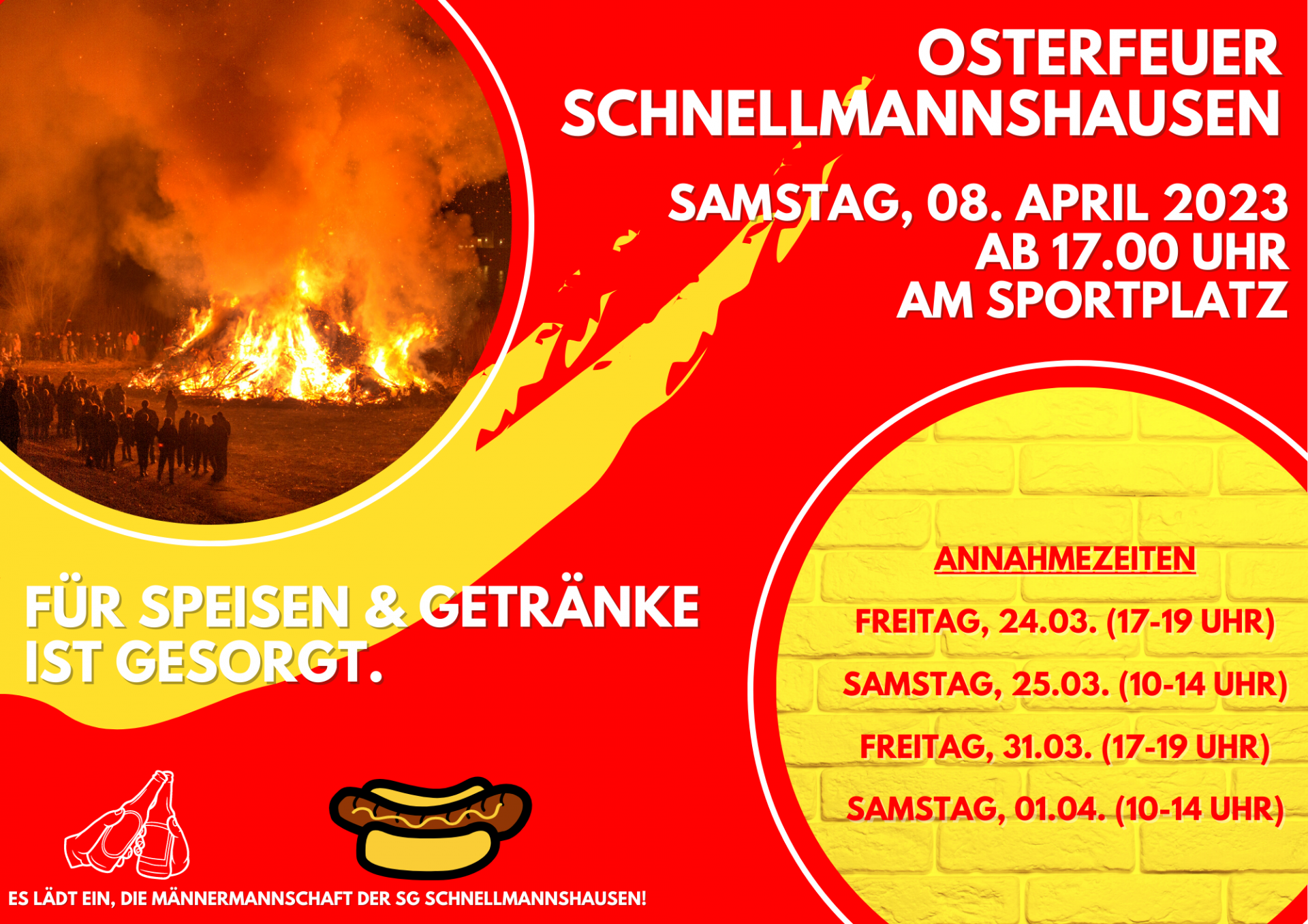 Die Männermannschaft der SG Schnellmannshausen lädt zum Osterfeuer ein...
