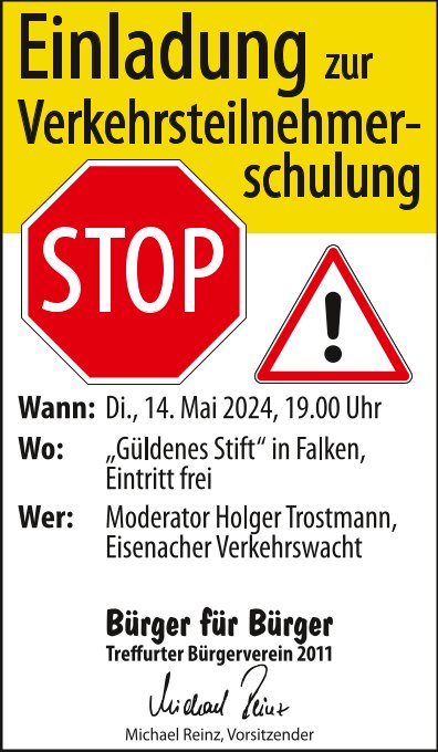 Der Treffurter Bürgerverein 2011 lädt zur Verkehrsteilnehmerschulung ein.